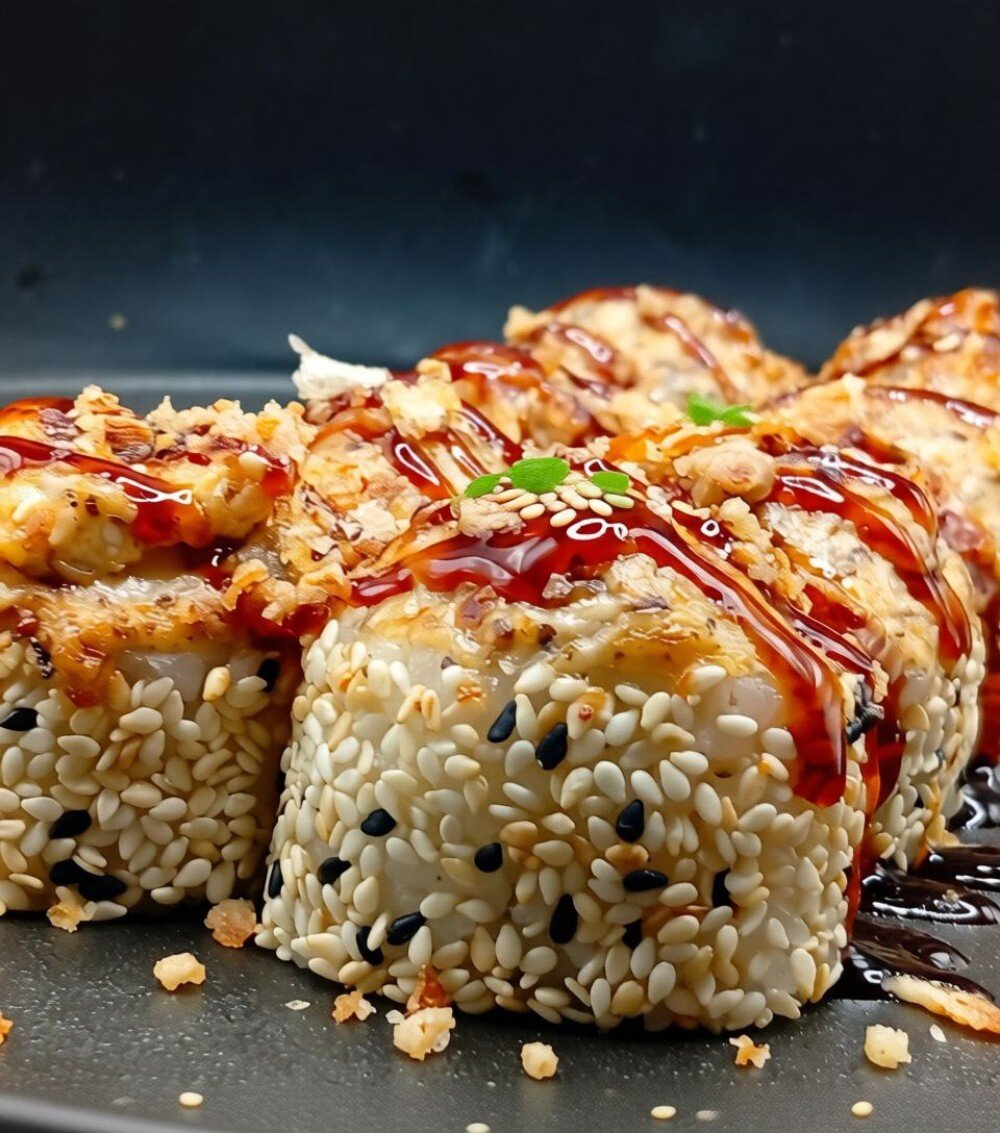 Куриный жюльен-ролл сочетает нежный омлет с хрустящим огурцом и сливочным сыром внутри, а сверху — аппетитная запеканка из куриного филе, шампиньонов и сырного соуса.